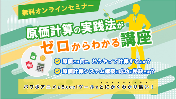 - 「無料オンラインセミナー 原価のしくみを実体験する講座 を開催します。 セミナーの詳細、お申し込みはこちら